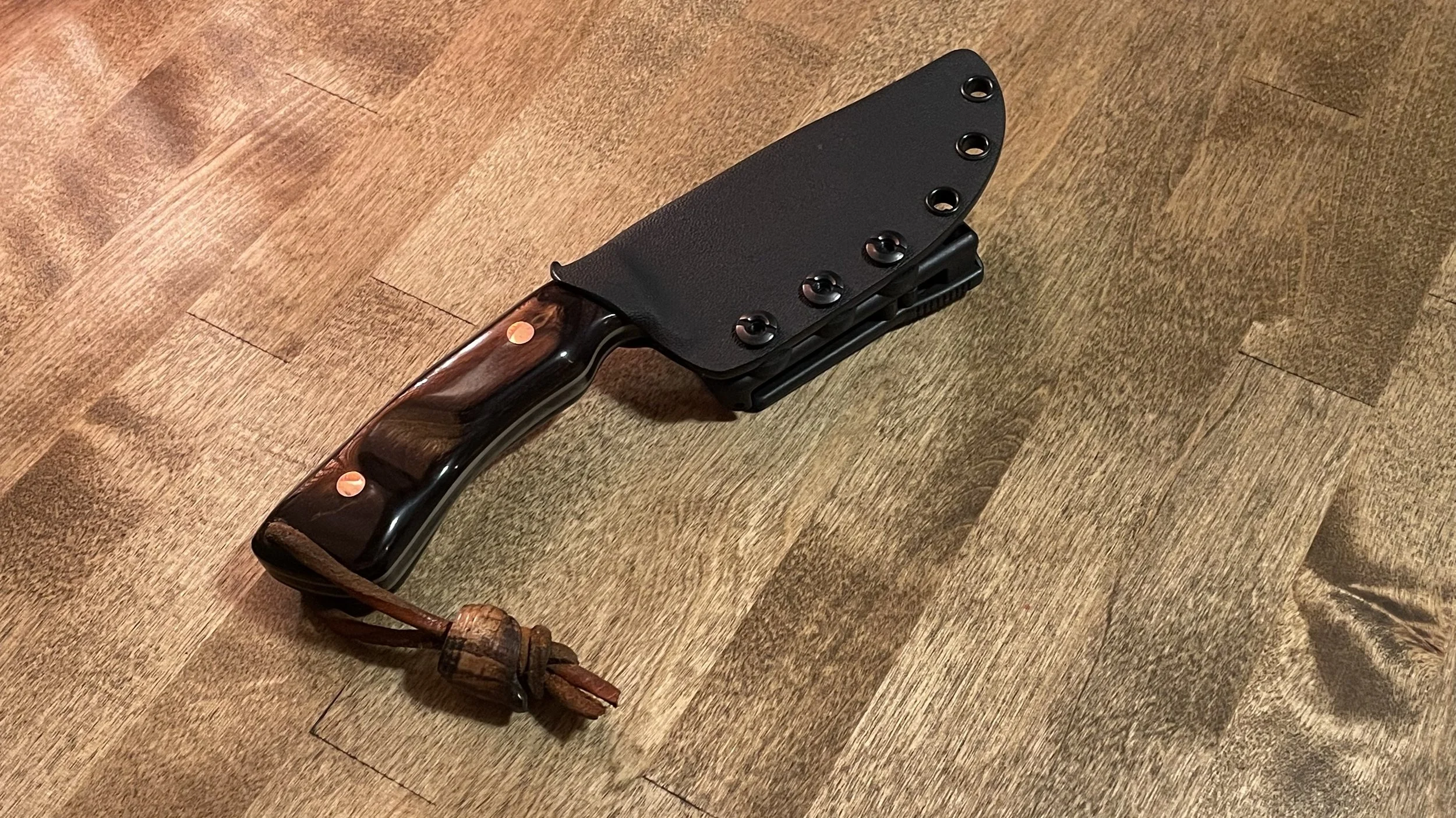 This blade is styled after a more traditional hunting knife, one that is ideal for skinning and field dressing. The relatively short handle and larger grip size allow for a firm yet ergonomic fit in your hand. The “coke bottle” shape of the grip makes for perfect indexing which will fatigue your hands far less than a basic smooth shape. These blades are tough and fill the roll of being a vital part of your pack when out in the woods, hunting or just going for a hike.